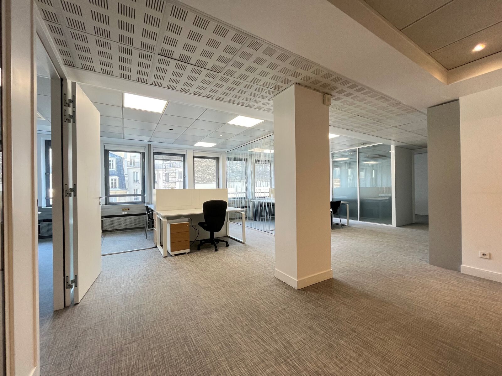 Ces locaux offrent une grande flexibilité d’aménagement et se composent d’un open space, de trois bureaux ainsi que d’une salle de réunion. Ils bénéficient également d’une climatisation réversible et de la fibre optique, garantissant un environnement de travail confortable et performant.