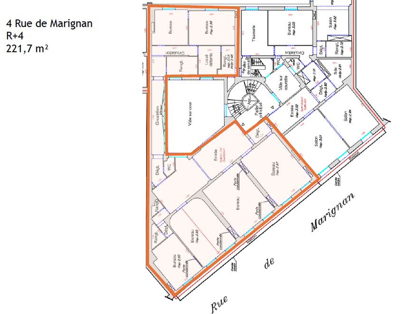 | 4ème étage | Bureaux | 221.7 m² | 1er avril 2026 | Civil ou professionnel | N.C. | N.C. |
