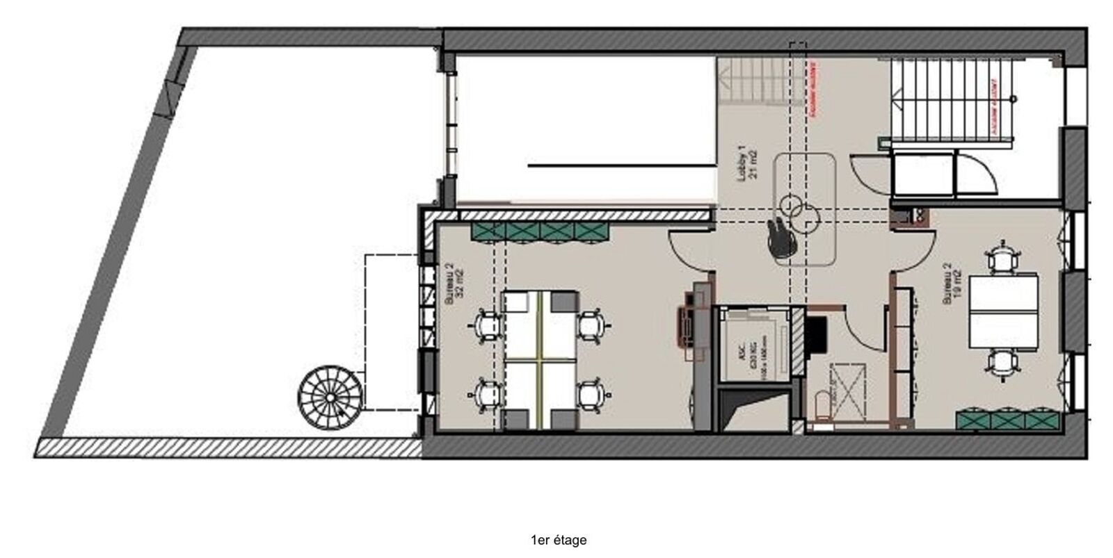 | 1er étage | Bureaux | 79 m² | Immédiate | m² HD |