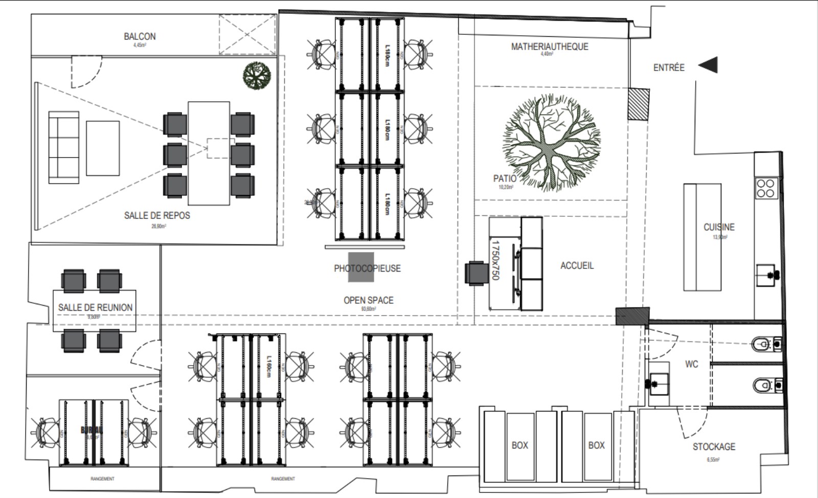 | 1er étage | Bureaux | 180 m² | Après accord | 3-6-9 ans | 420 € HT/HC/m²/an | 68 € m²/an HT |