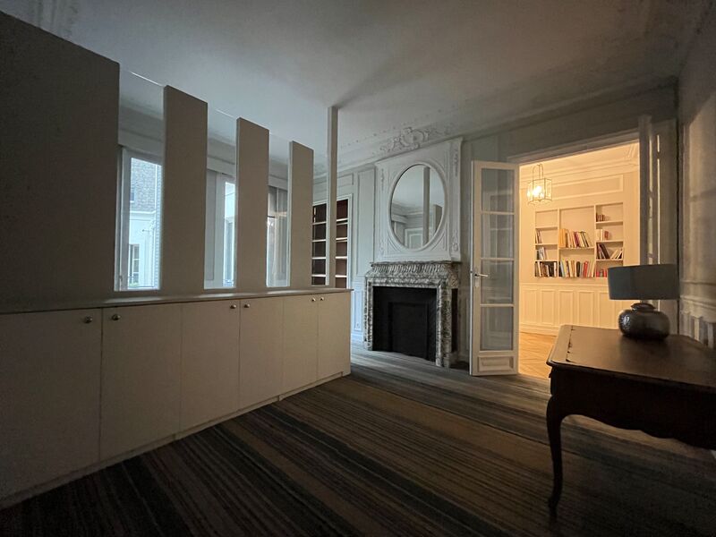 Alex Bolton vous propose à la location une surface de 184 m², récemment rénovée et bénéficiant du charme de l’ancien avec parquet, moulures et cheminées. Elle comprend une cuisine équipée et offre un espace flexible permettant divers aménagements selon vos besoins. La location inclut également un emplacement de stationnement dans la cour pour une voiture, un système de chauffage/climatisation réversible et une cave d’environ 10 m².