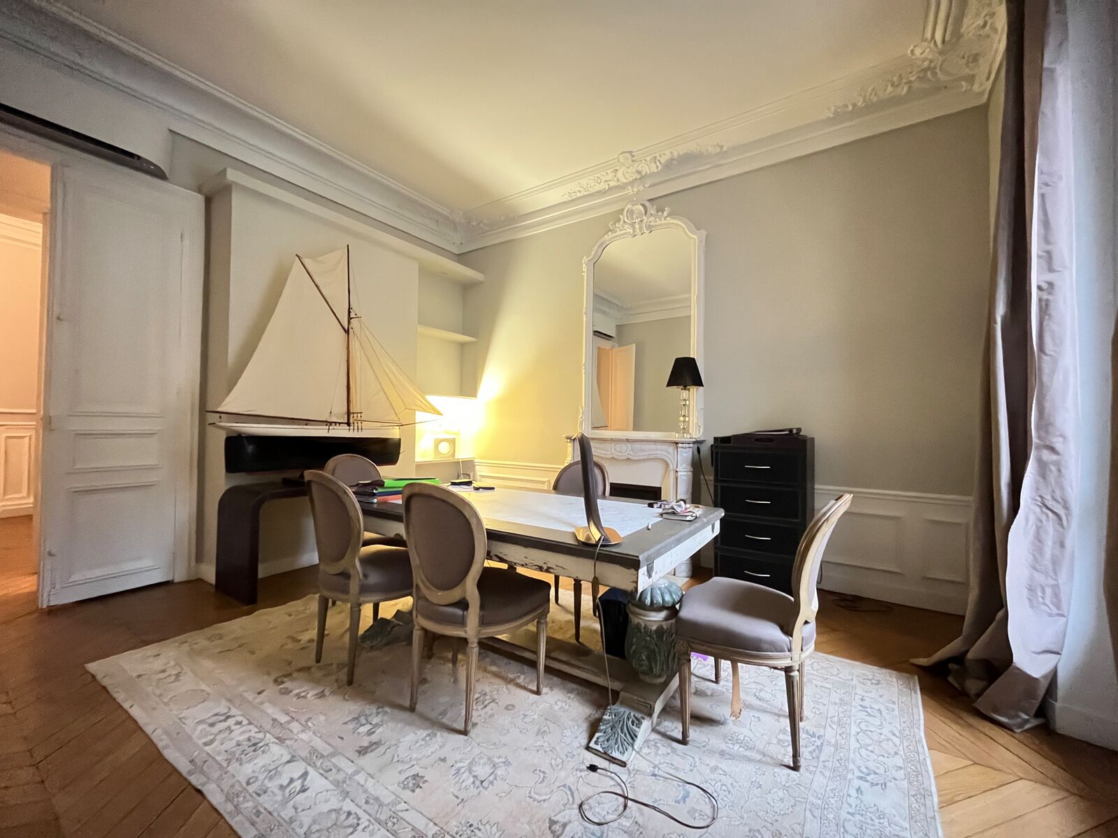 - Parquet, moulures, cheminées