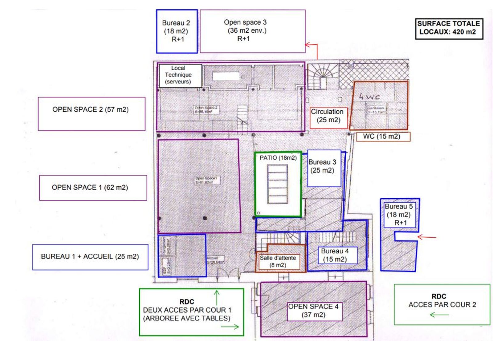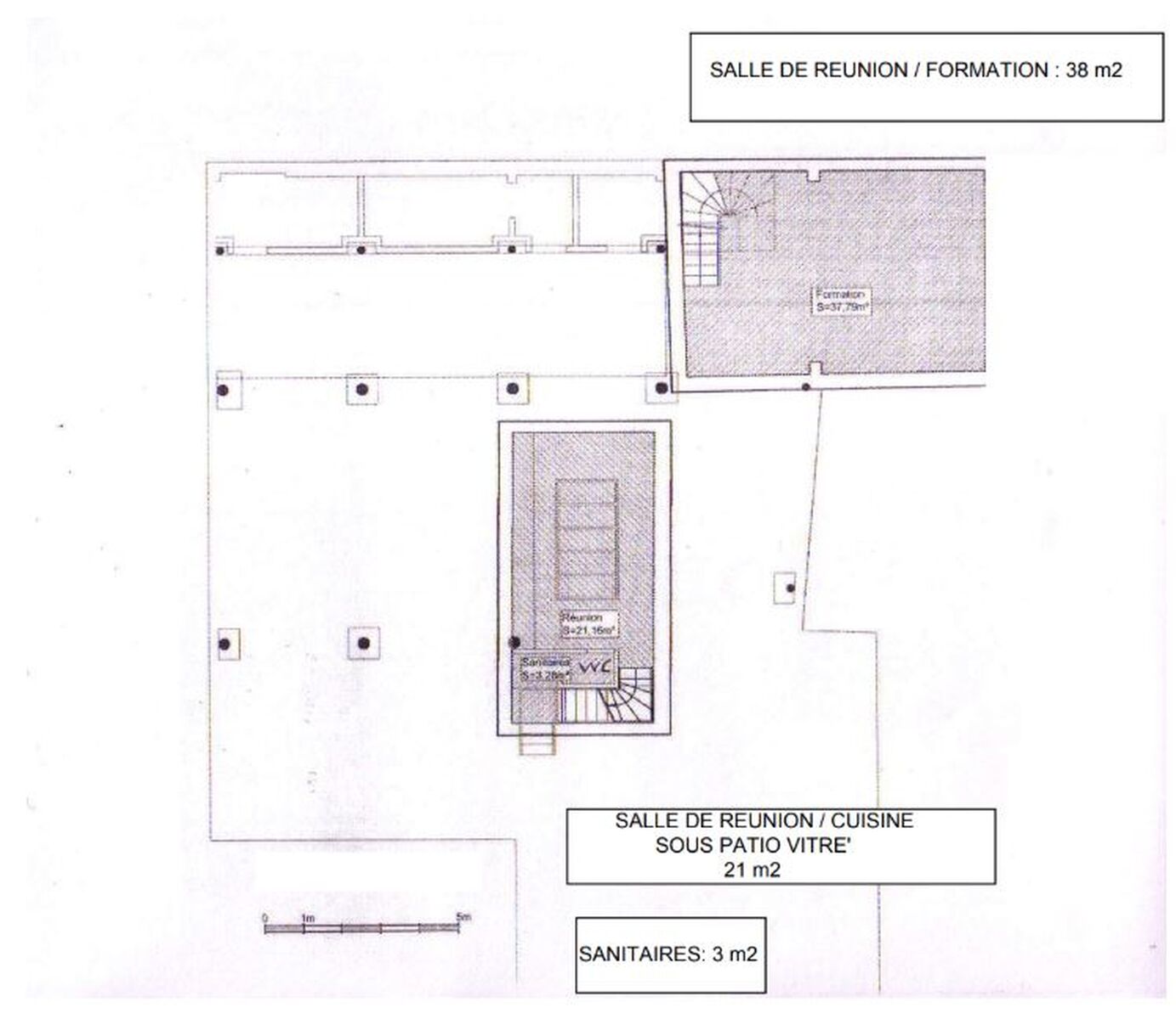 - 2 salles de réunion en sous-sol dont une éclairée par un large puit de lumière